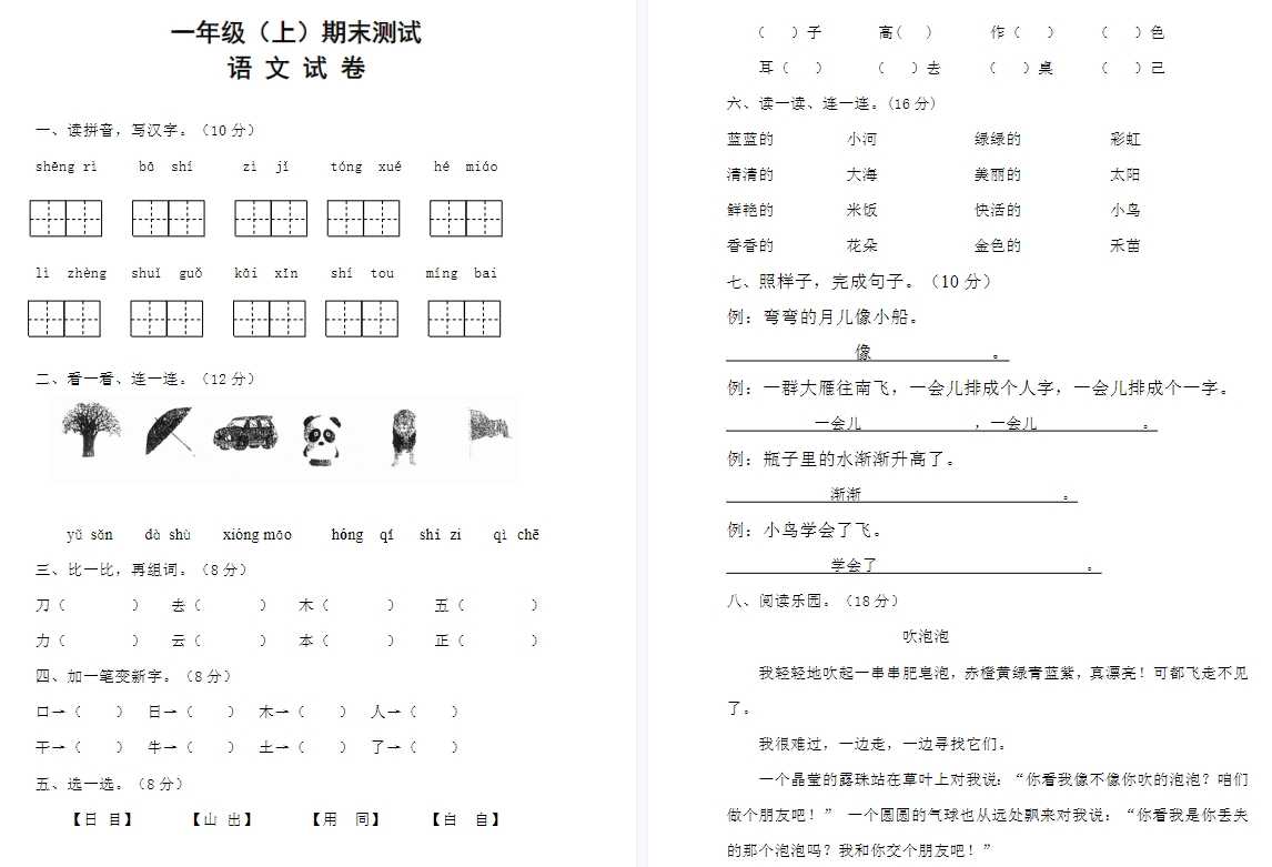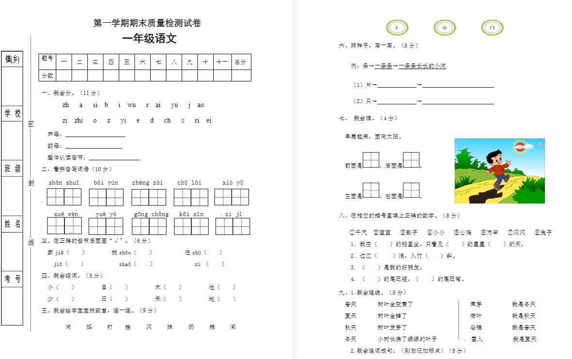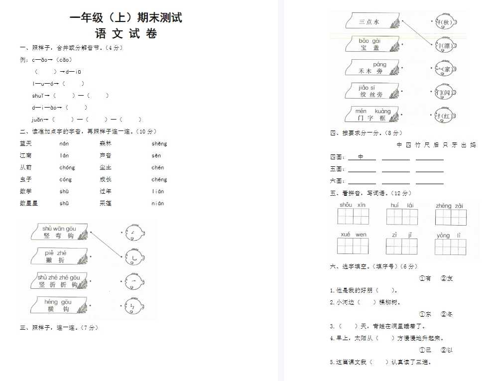 34份打包!一年级语文期末检测,含答案,电子版PDF可打印【超高质量】
