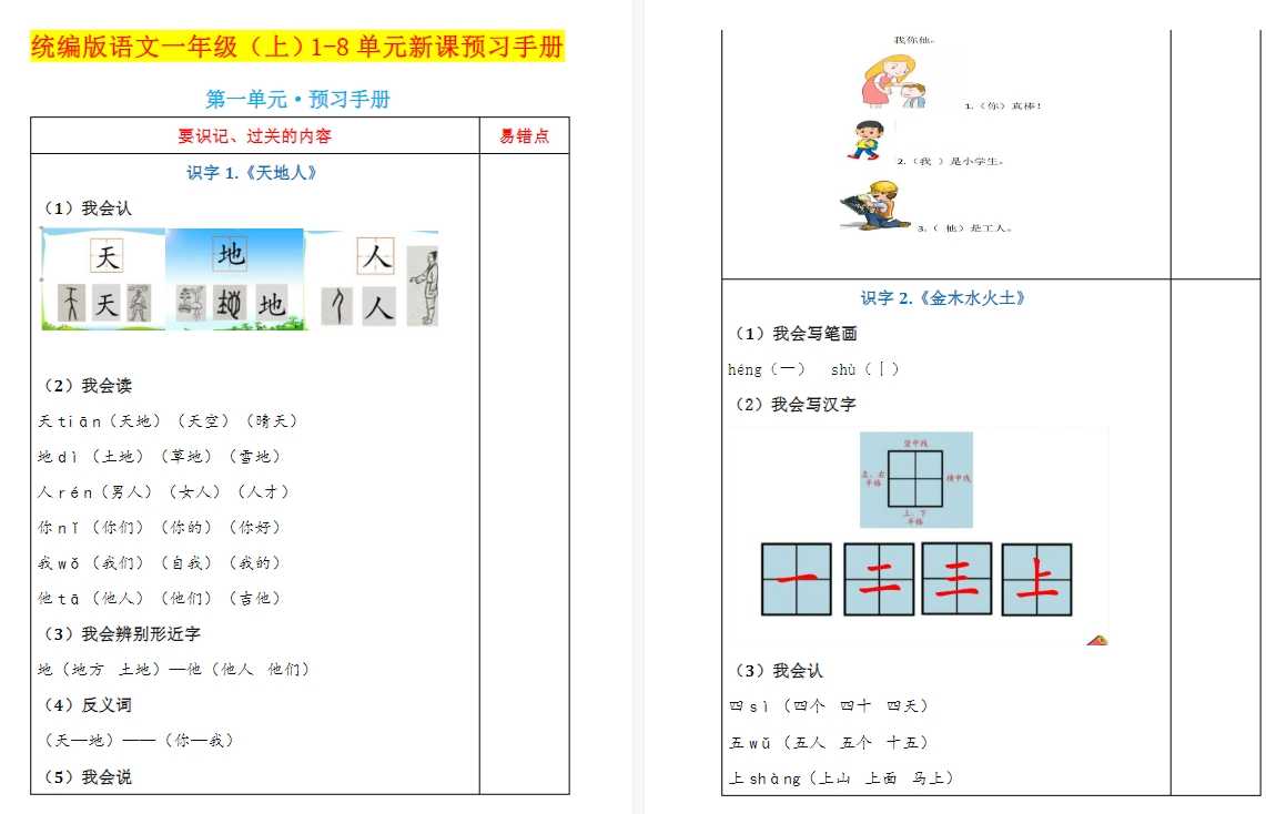 5份打包!一年级语文课前预习,电子版PDF可打印【超高质量】