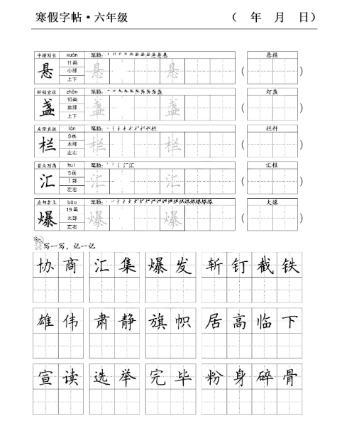六年级语文寒假字贴篇,复习+预习+衔接(1)
