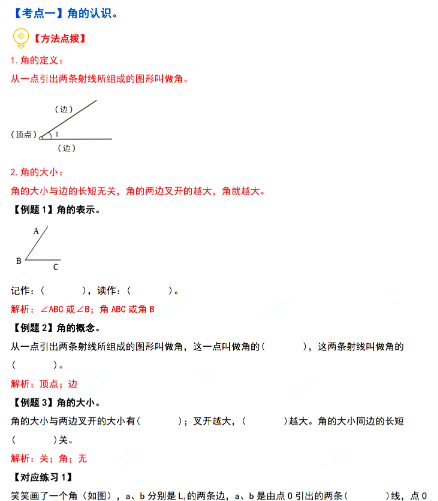 首页 > 全部 > 四上数学 > 四年级上册数学角的度量专项练习