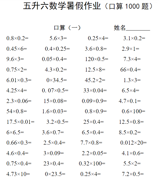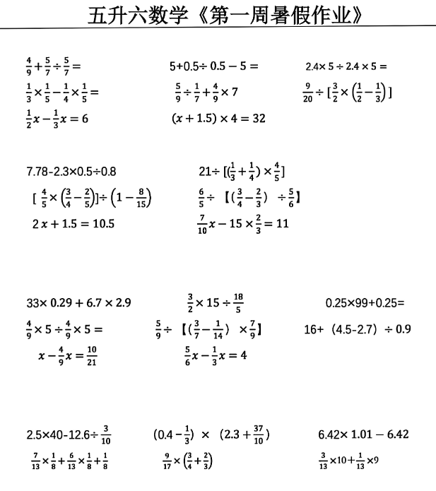 五升六暑假预习六年级上册数学