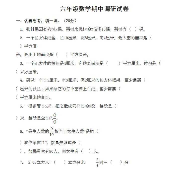 苏教版六年级数学上册同步习题+单元测试+月考+期中期末测试