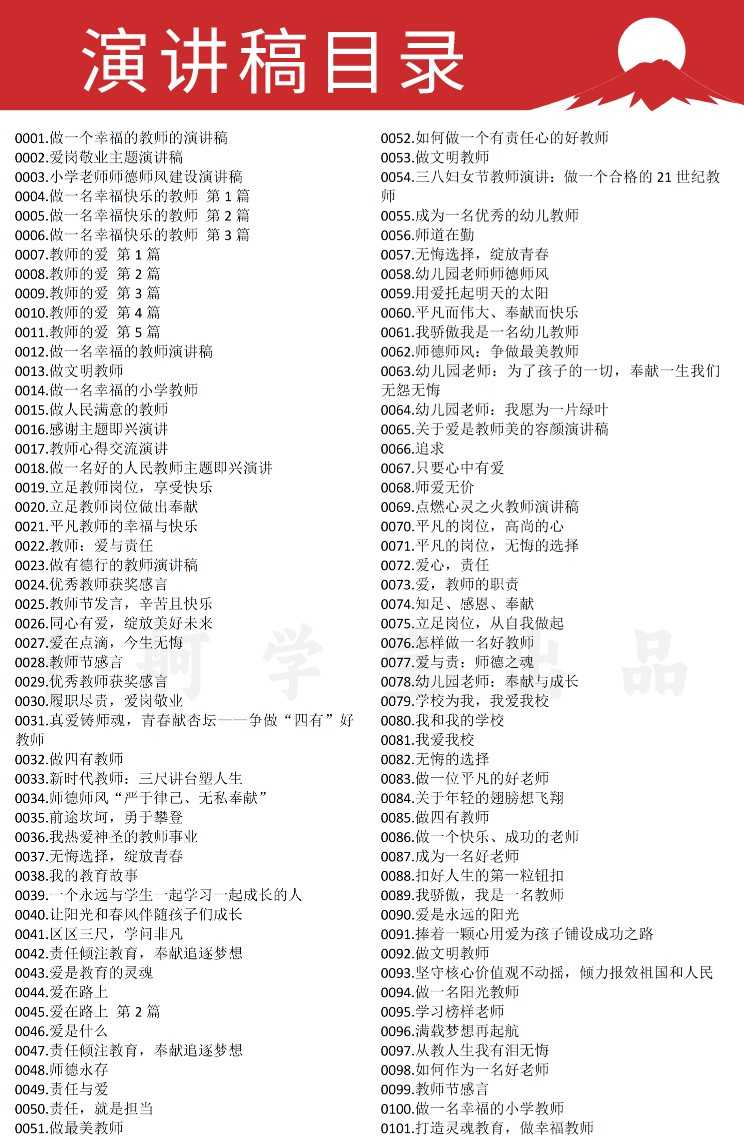 教师演讲稿,一共1200多份,覆盖到各种教师活动内容