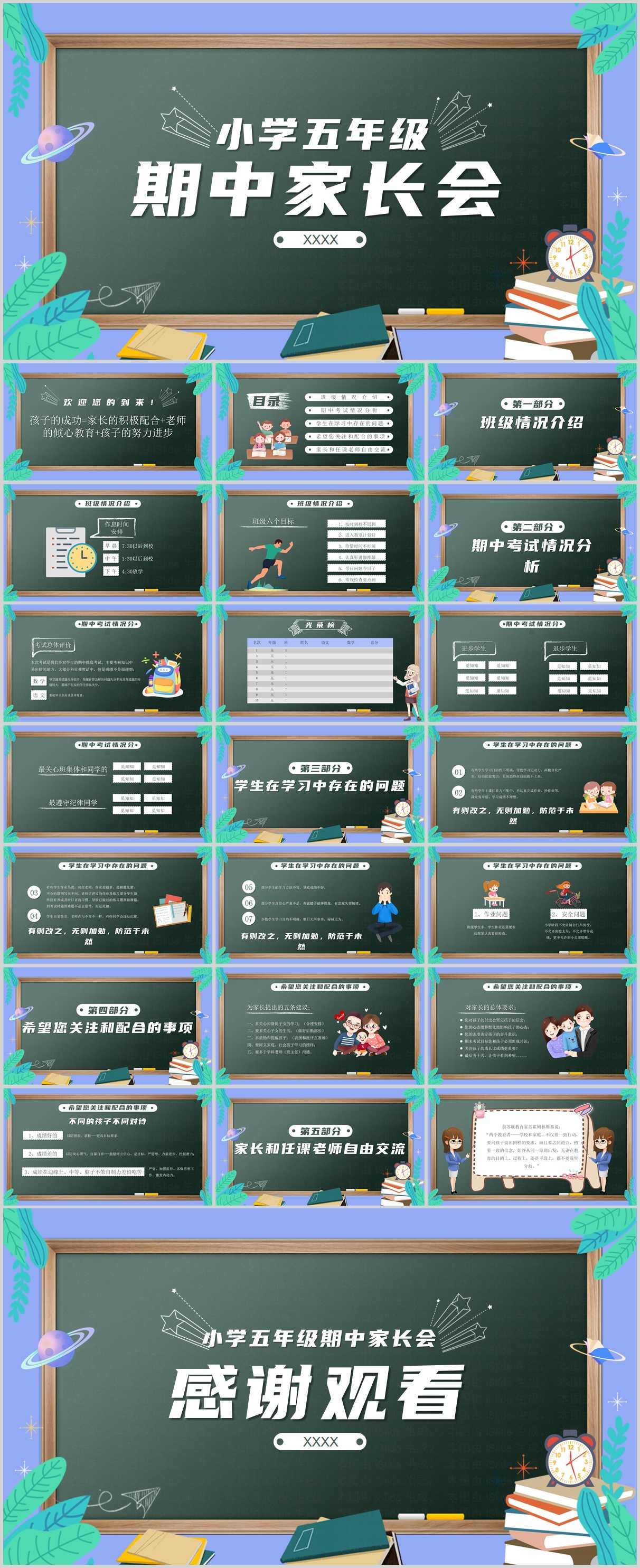 五年级家长会PPT+发言稿(含开学、日常、期中、期末等家长会主题)