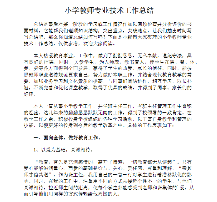 首页 > 全部 > 小学教辅 > 中小学教师评职称述职报告+工作计划总结