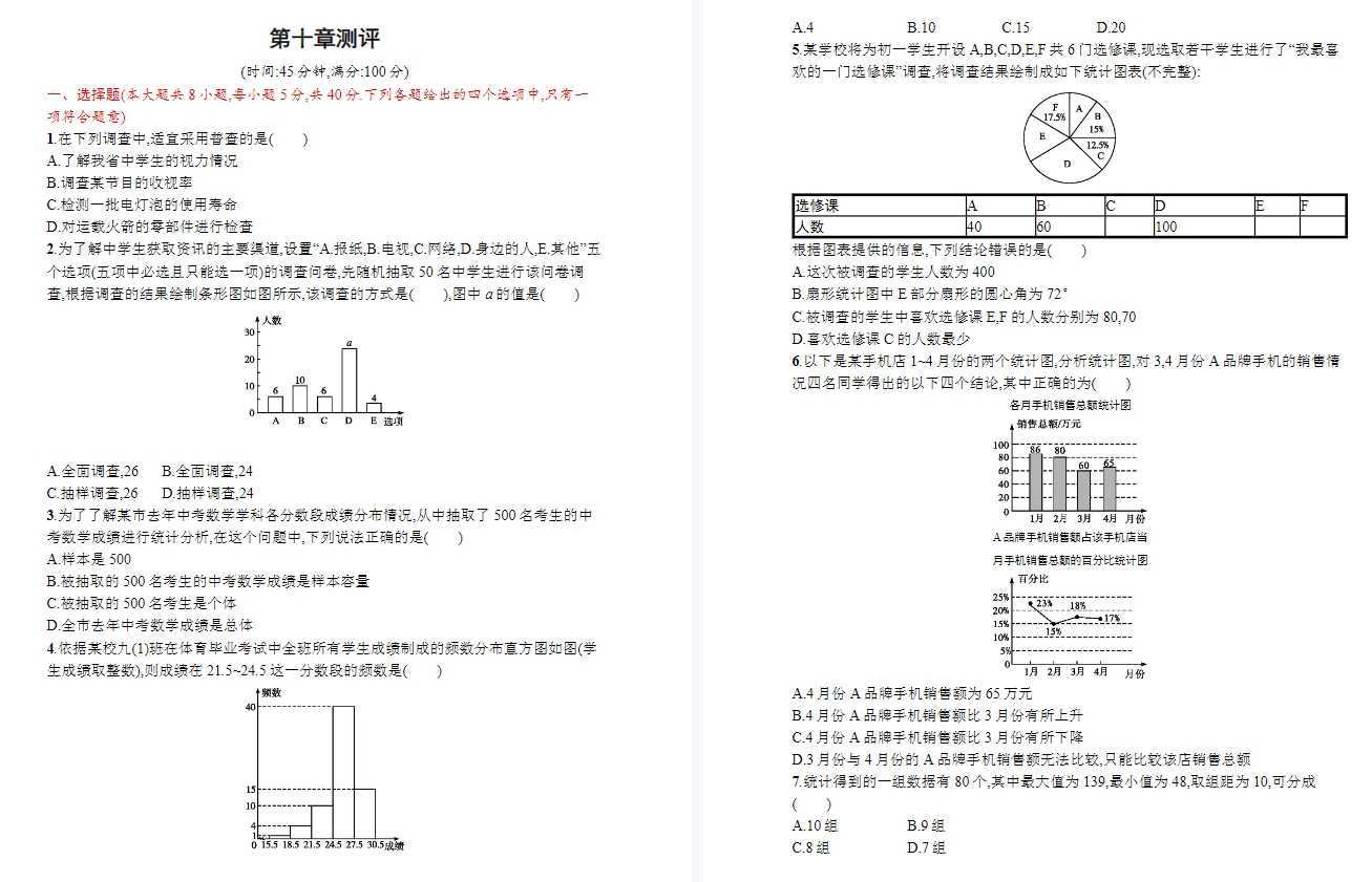 40份打包!初中同步测控优化设计数学七年级下册配人教版word,测试含答案,电子版PDF可打印【超高质量】