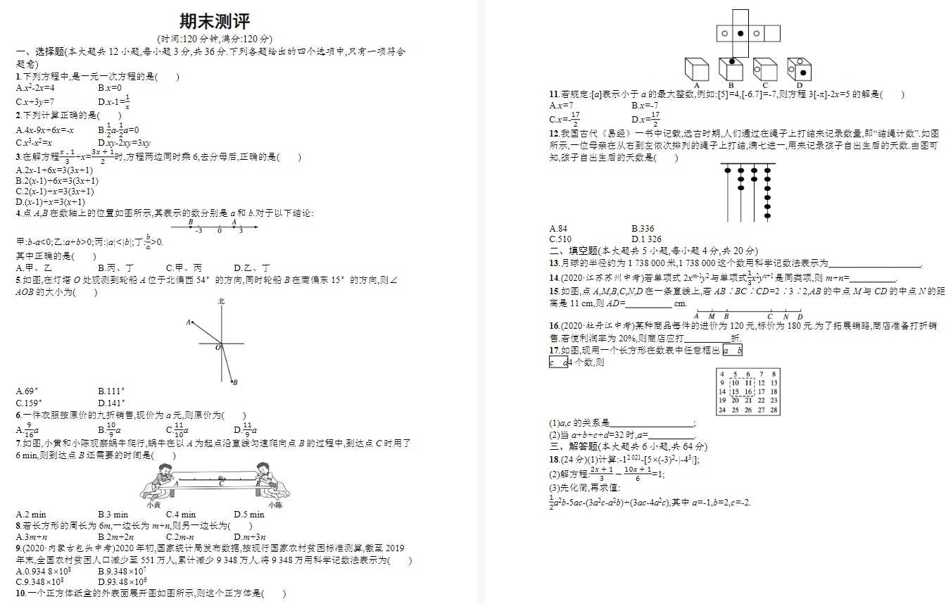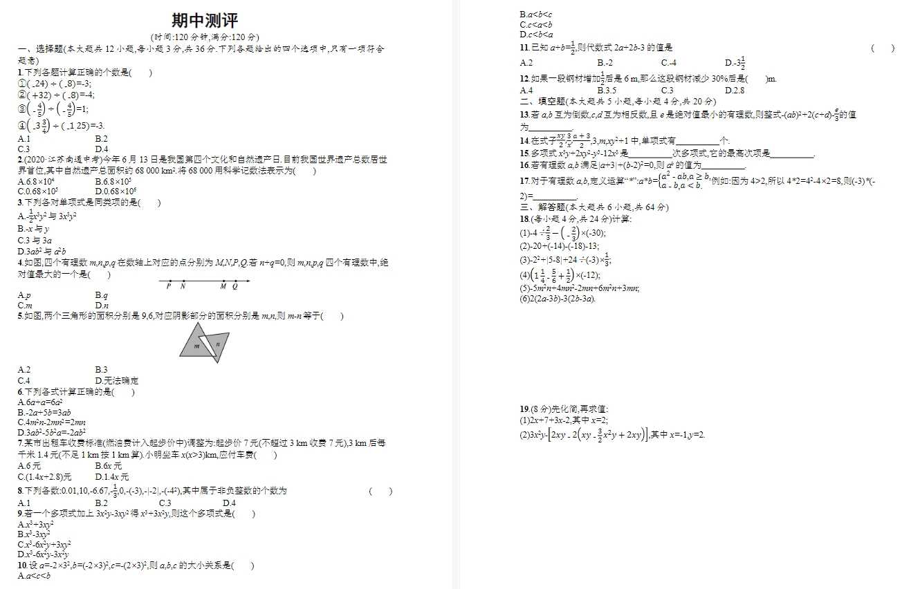 52份打包!初中同步测控优化设计数学七年级上册配人教版word,测试含答案,电子版PDF可打印【超高质量】