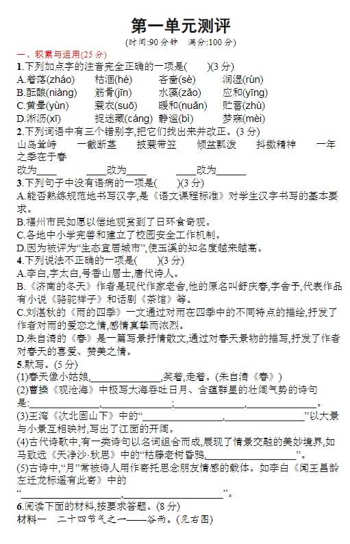 34份打包!初中同步测控优化设计语文七年级上册配人教版word,测试含答案,电子版PDF可打印【超高质量】