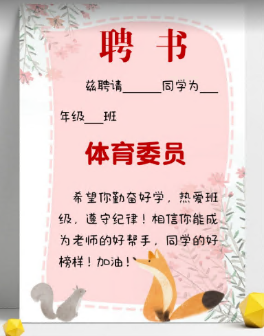 班干部聘书模版,奖状模版