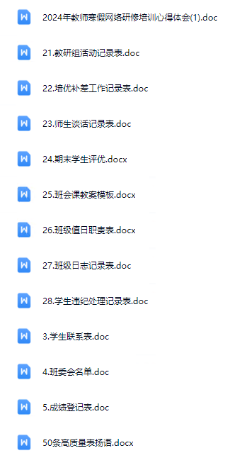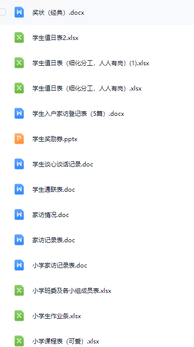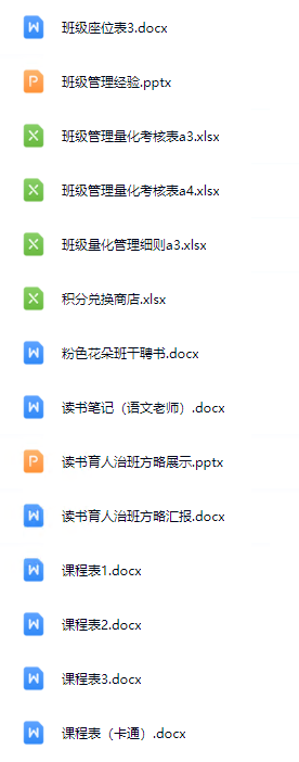 首页 > 全部 > 小学教辅 > 班主任工作必备表格(课程表,评分表,检查表,教案,评优等)