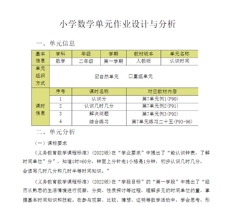 小学数学大单元整体作业设计(人教版1-6年级省级获奖资源)
