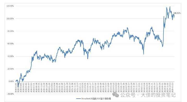 自从2020年1月以来,deepseek做的20只成分股做成的组合,至今取得了106.31%的收益。