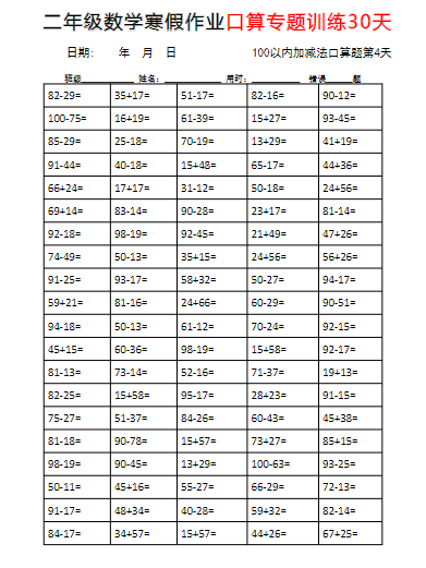 2025春二年级数学(通用)数学寒假作业专项练习题