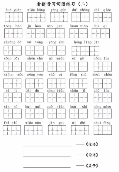 二(上)语文第二单元生字扩词词语表(看拼音写词语)