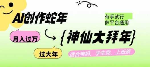 AI创作蛇年各路神仙大拜年,月入过万,有手就行,多平台通用!